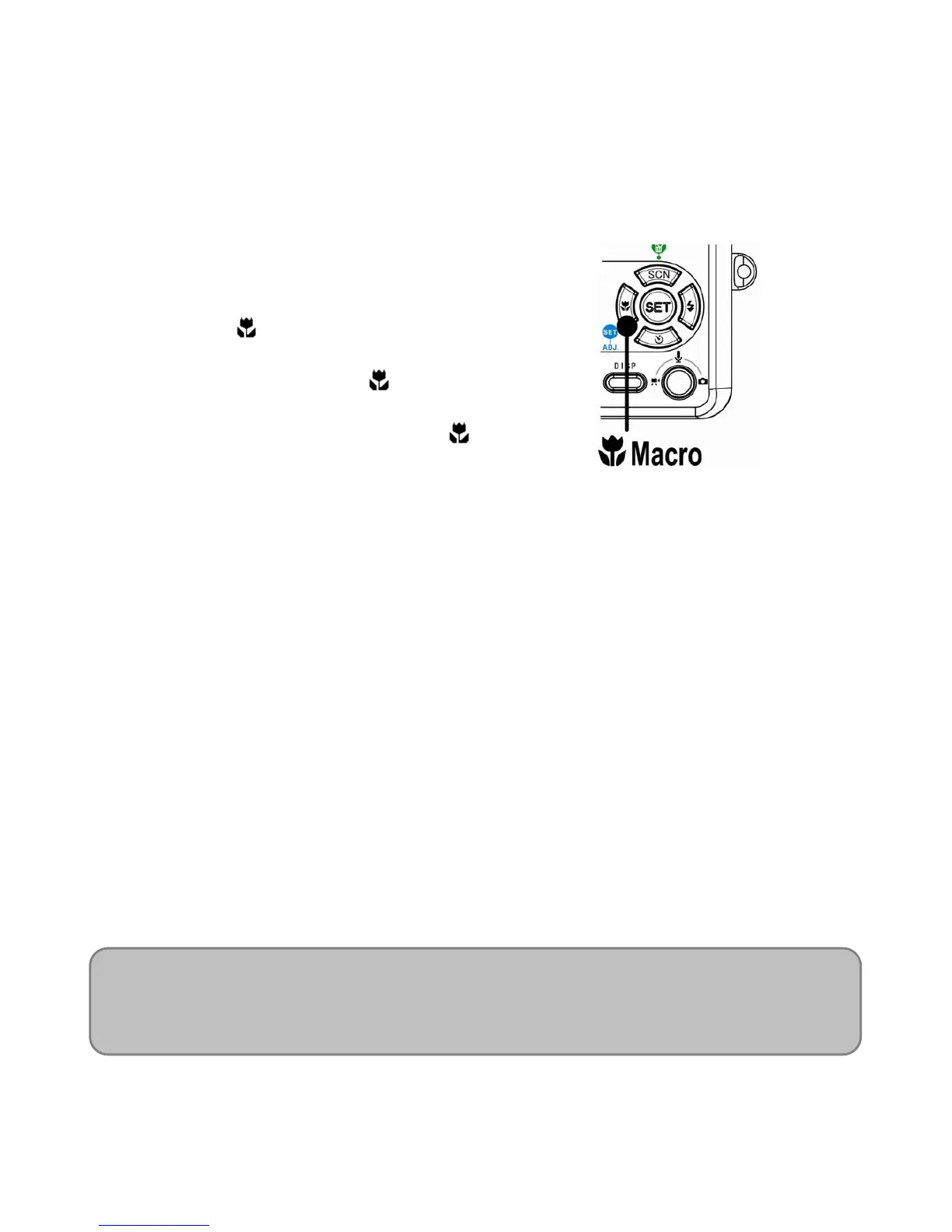 Your camera is equipped with a macro function that allows you to focus on very close