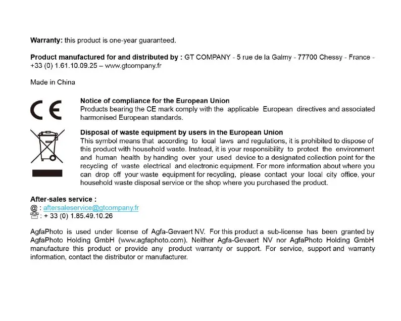 AgfaPhoto DC5500 - Warranty, Compliance, and Support; Product Information and Contact Details