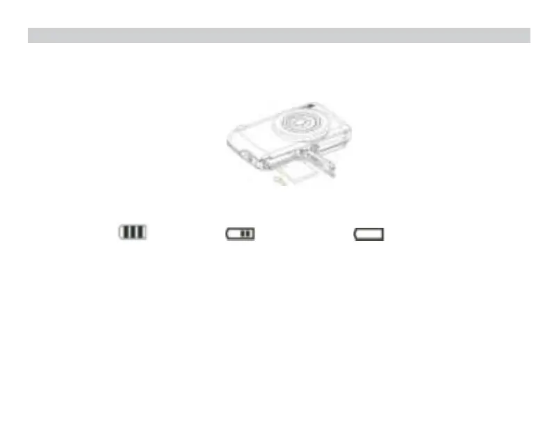 A "low battery" warning will show up on the screen when the battery charge is insufficient. Shortly thereafter your camera