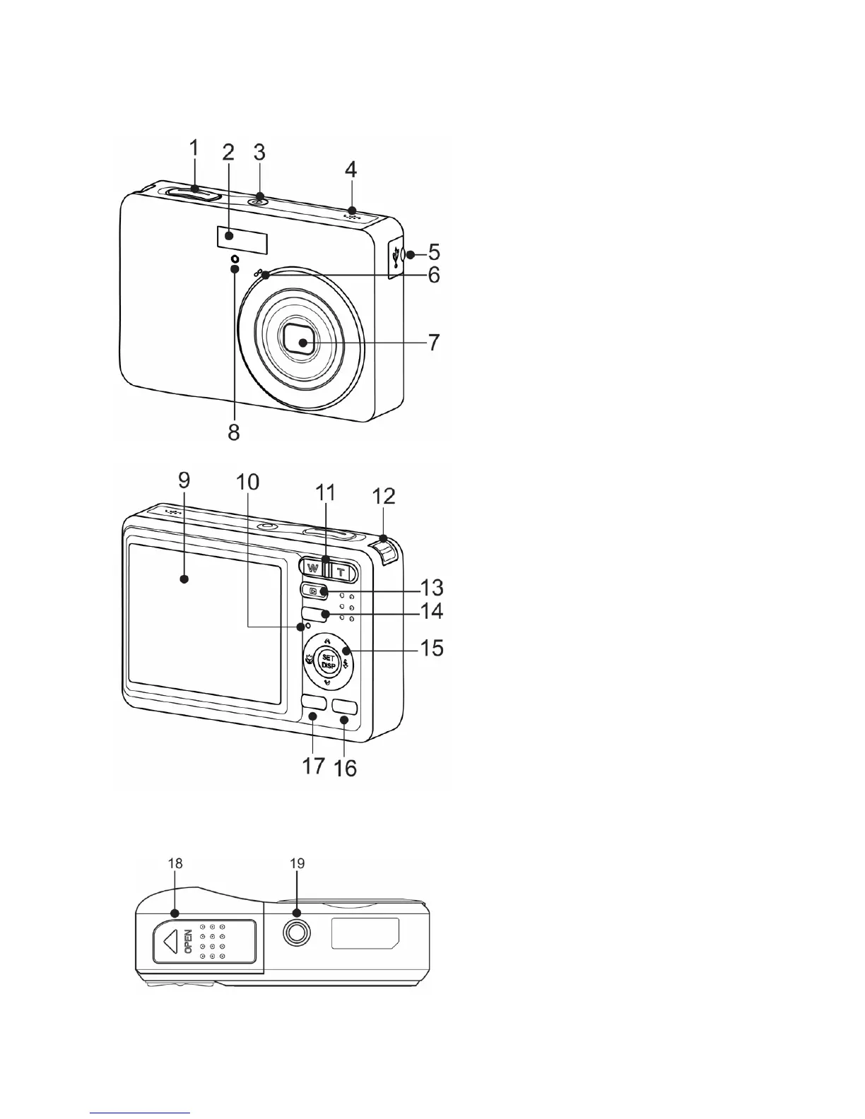 AgfaPhoto Digital Camera - Camera Components; Front and Top View Components; Rear View Components; Bottom View Components