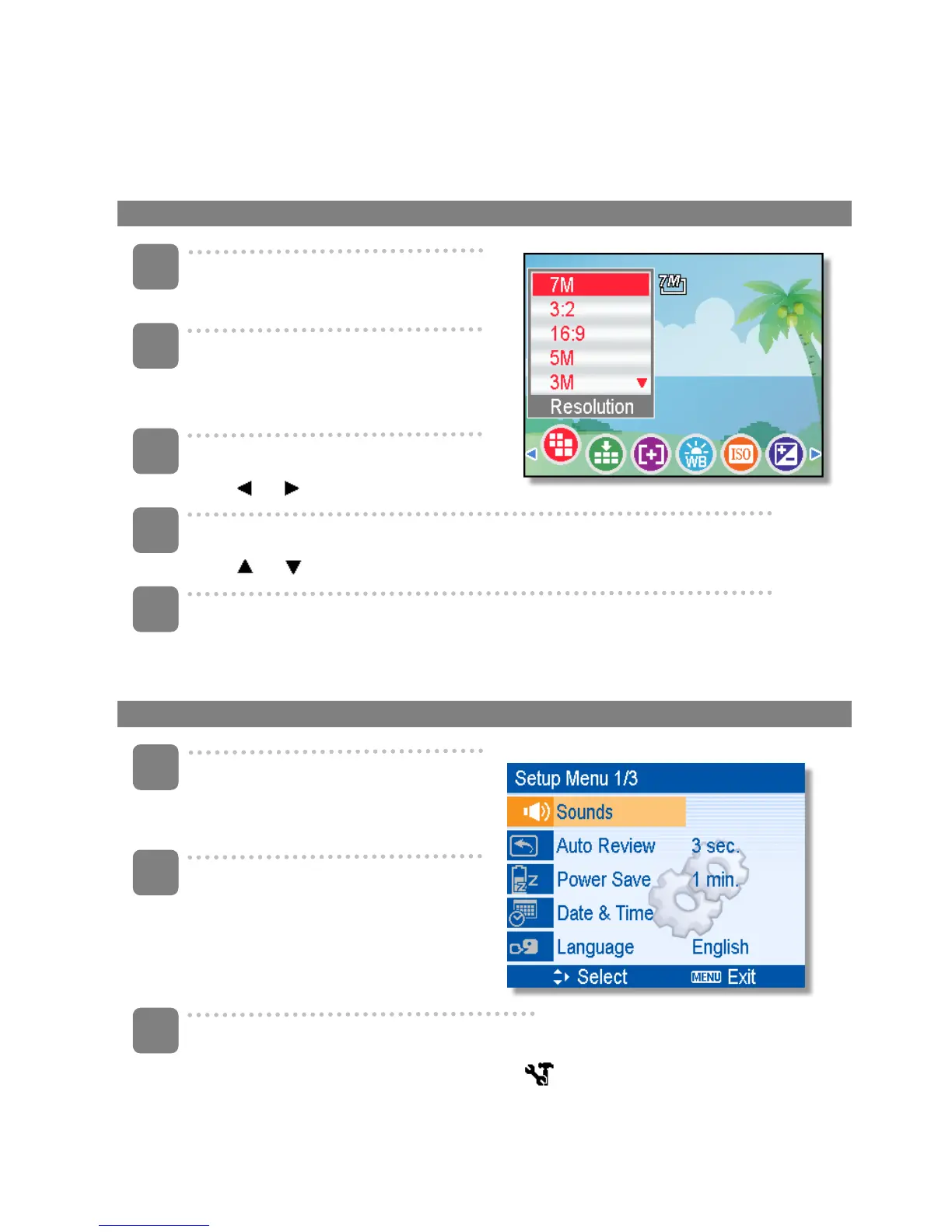 When a menu is displayed, the four-way control and the SET button are used to make the
