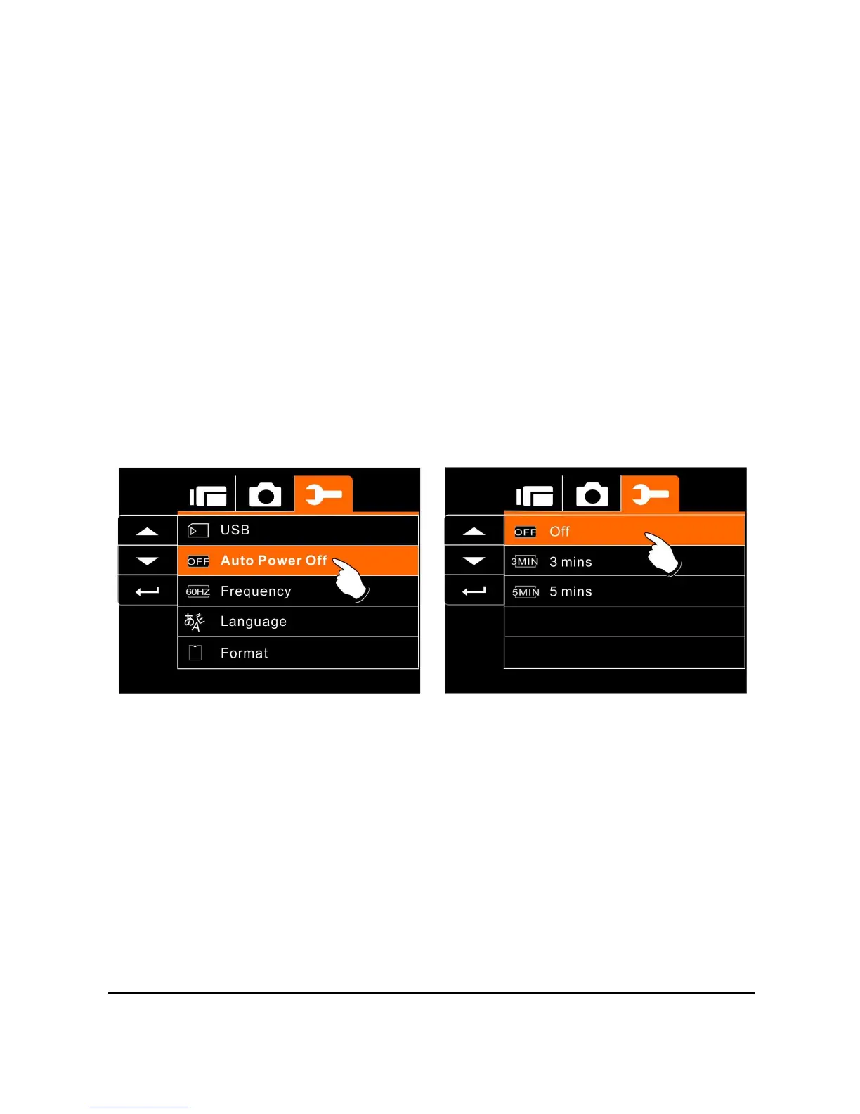 3. Press 4-Way Direction Button to select OFF, 3 mins, or