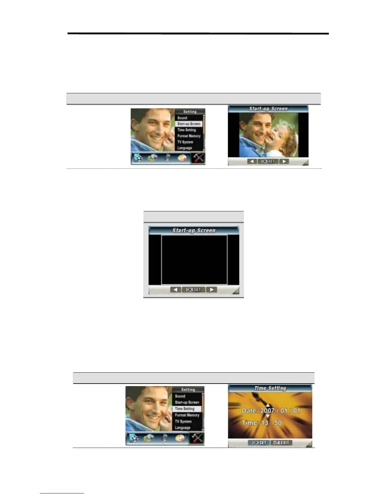 Customize the Start-up Screen with your favorite pictures. Press Right/Left Buttons to select the