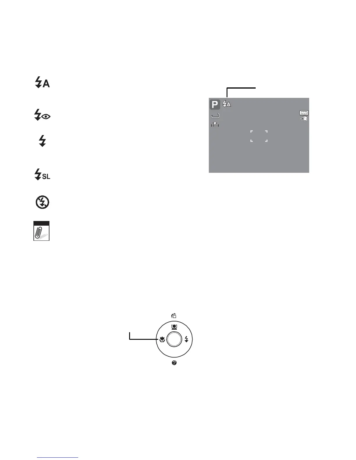 • Press the Macro button repeatedly until the desired focus mode icon is displayed on the