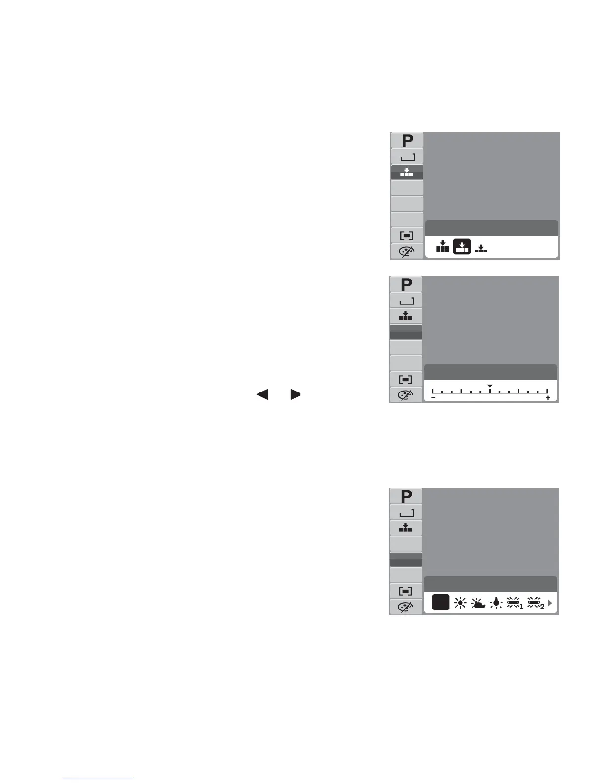 • The available settings are: OEV, +0.3EV, +0.7EV, +1.0EV, +1.3EV, +1.7EV, +2.0EV, -0.3EV, -