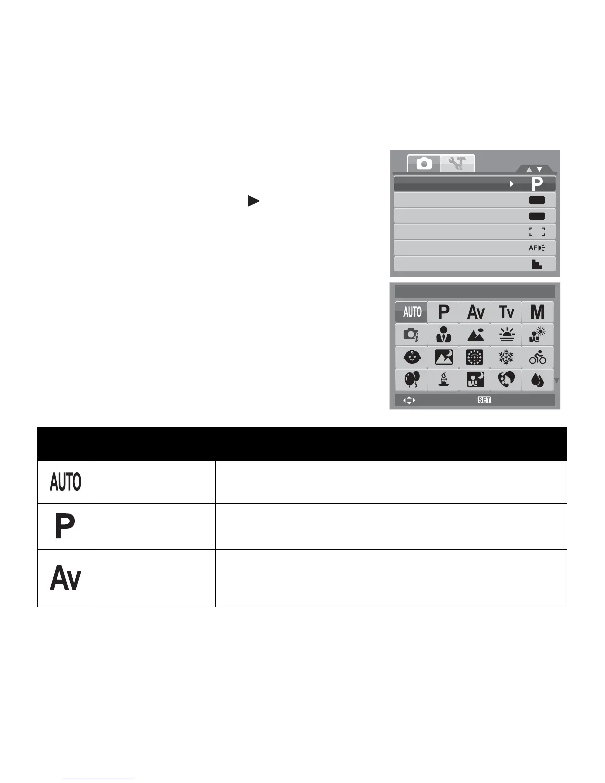 The table below shows the available scene mode settings.
