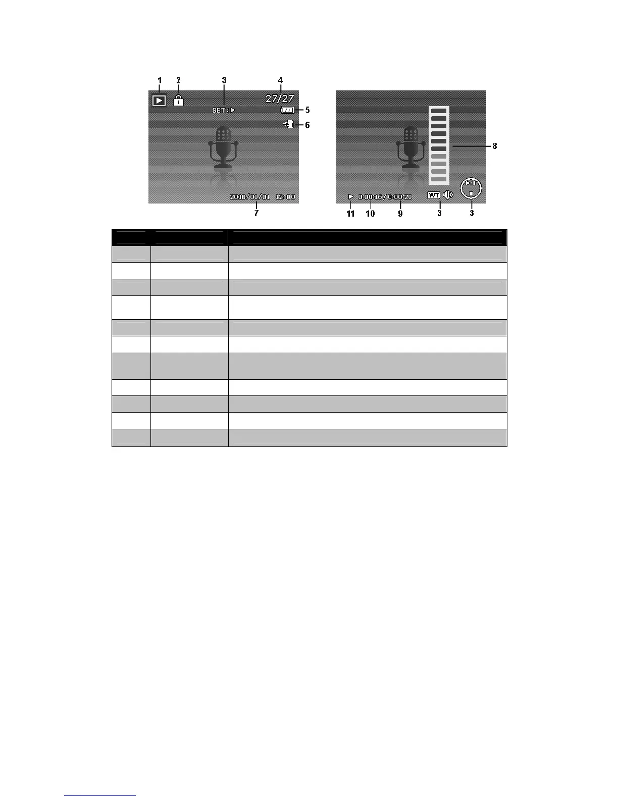 3 Button intro Indicates the button to press on the camera to play a video or audio file.