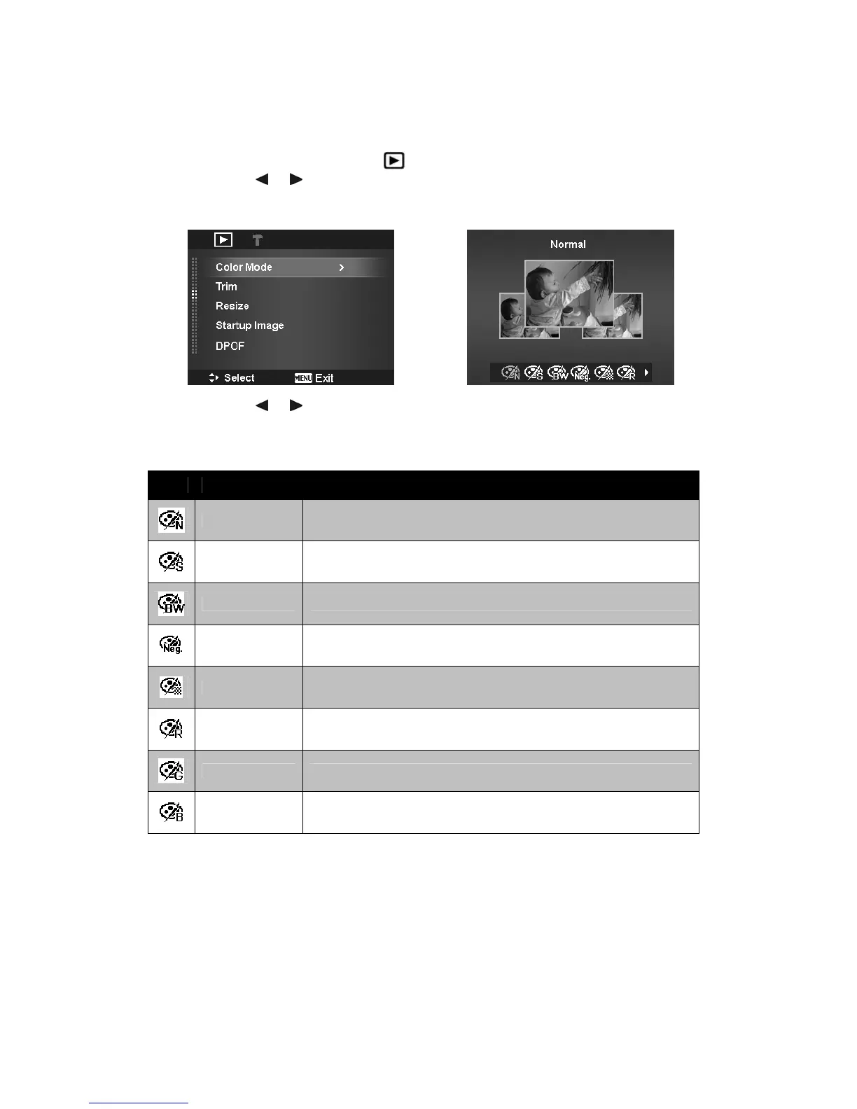 The Color Mode function lets you adjust edit still images to apply different colors or tones for a more