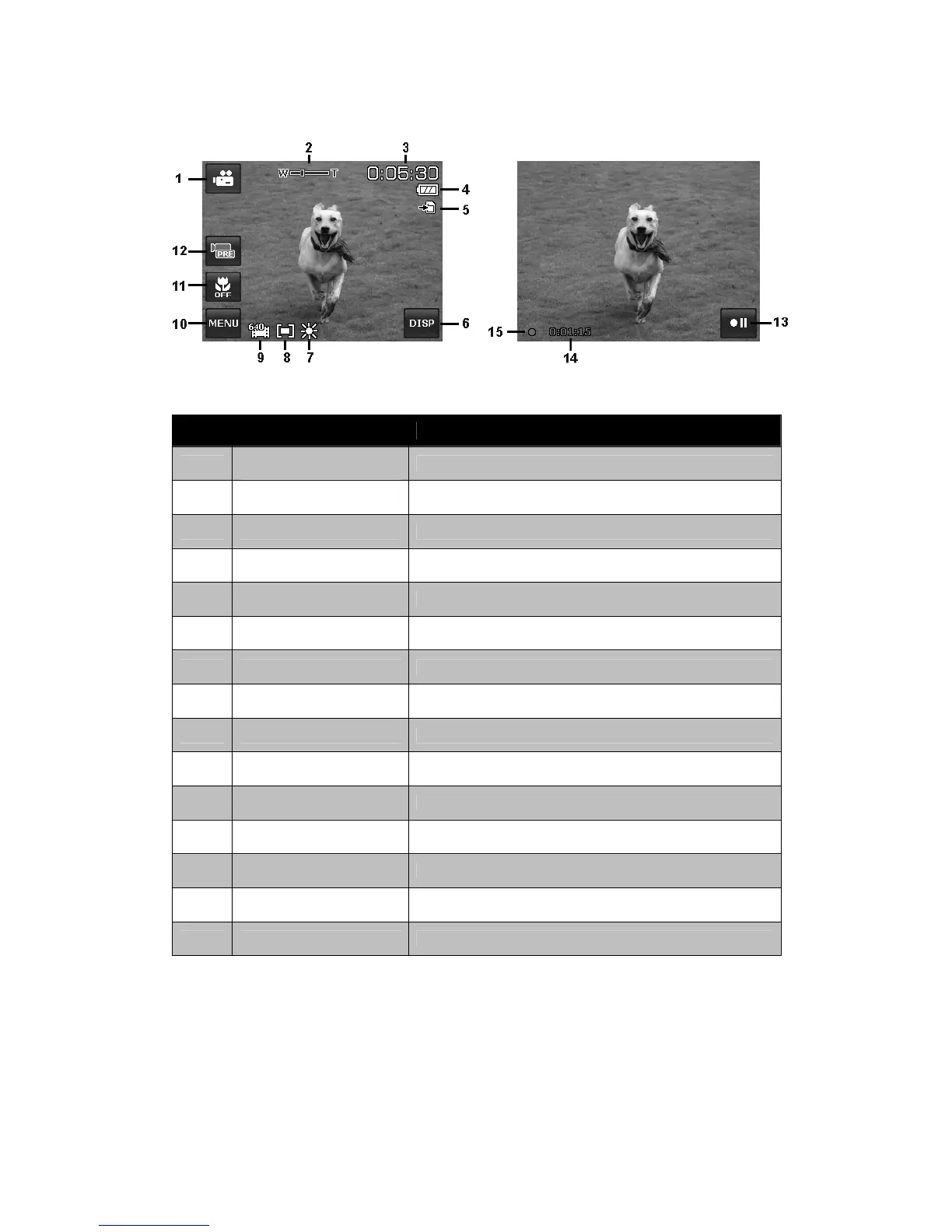 12 Touch button - Pre Record Tap to set pre record on/off.