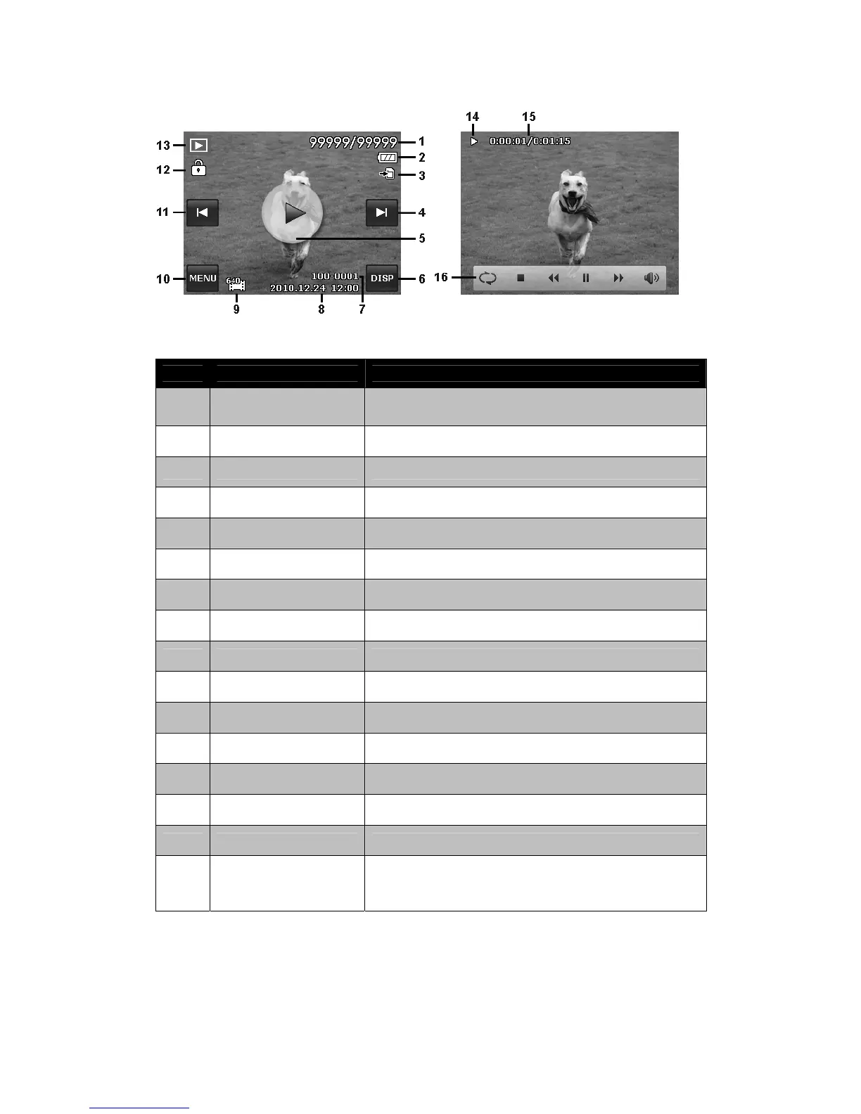 15 Played time Indicates the played time of the video.