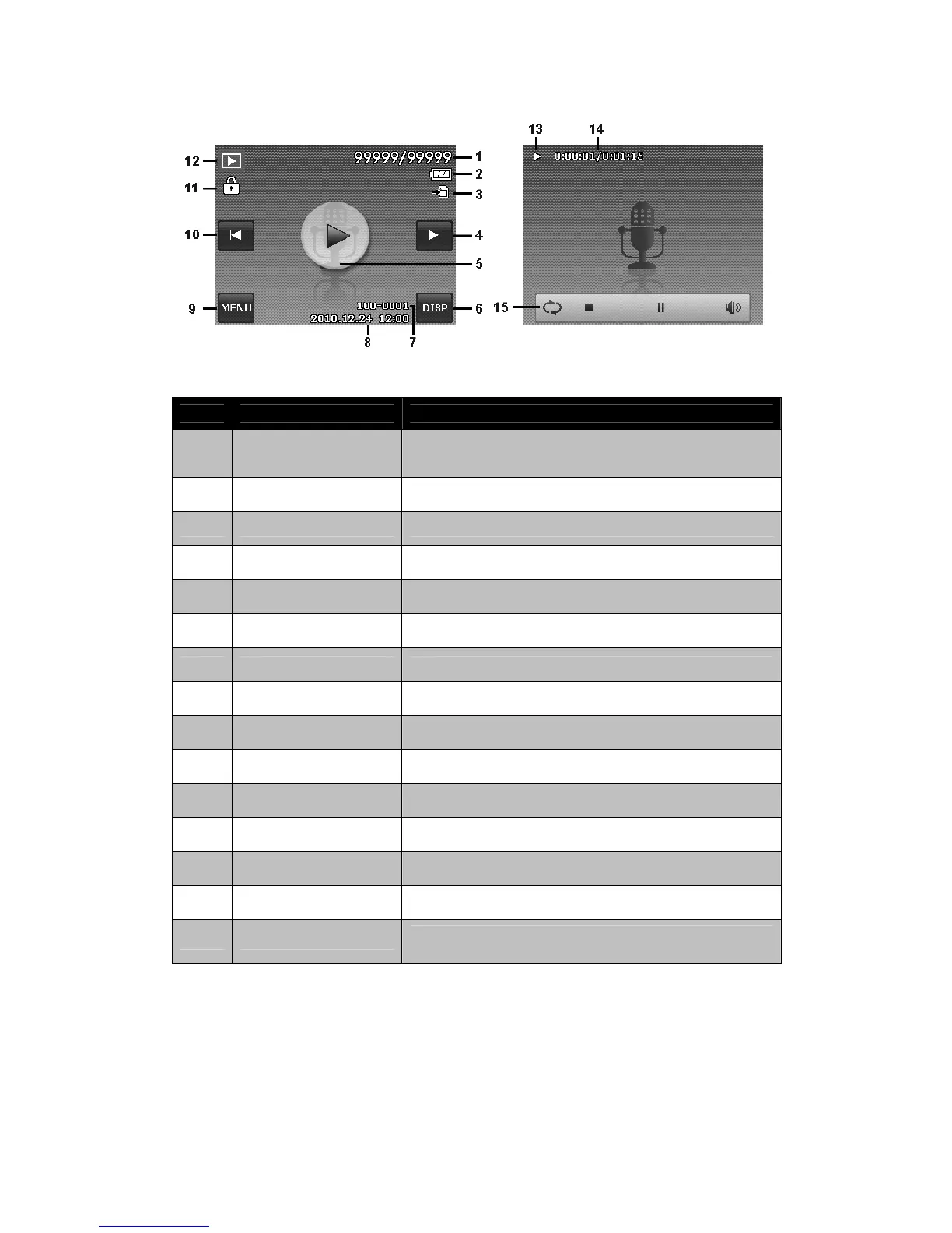 8 Date & Time Displays the recorded date & time of the audio clip.