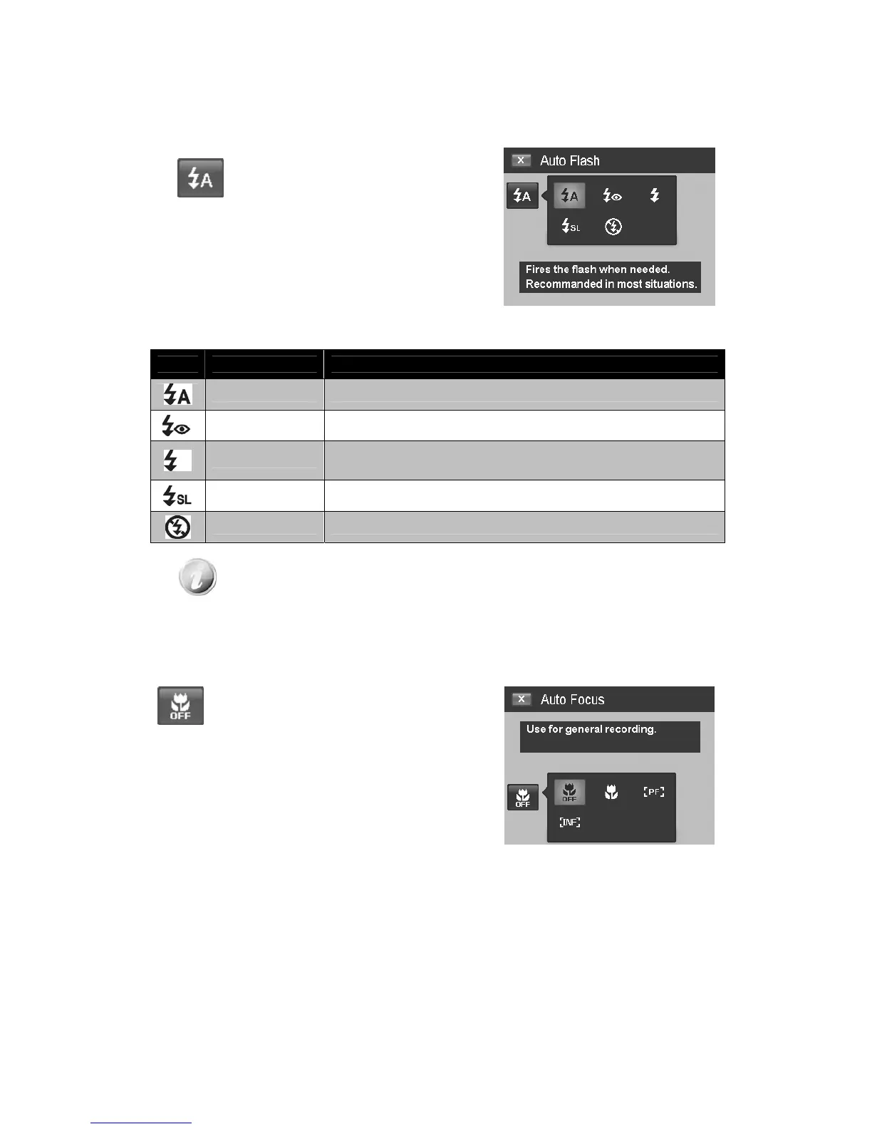 Auto Flash The flash fires automatically whenever extra lighting is needed.