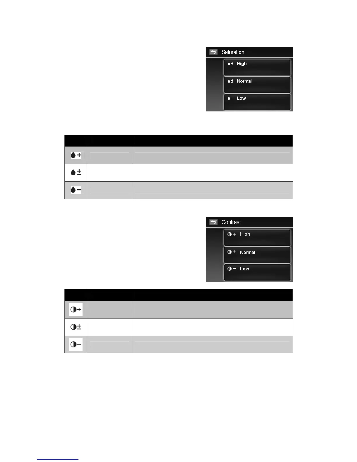 The table below shows the available Saturation settings.
