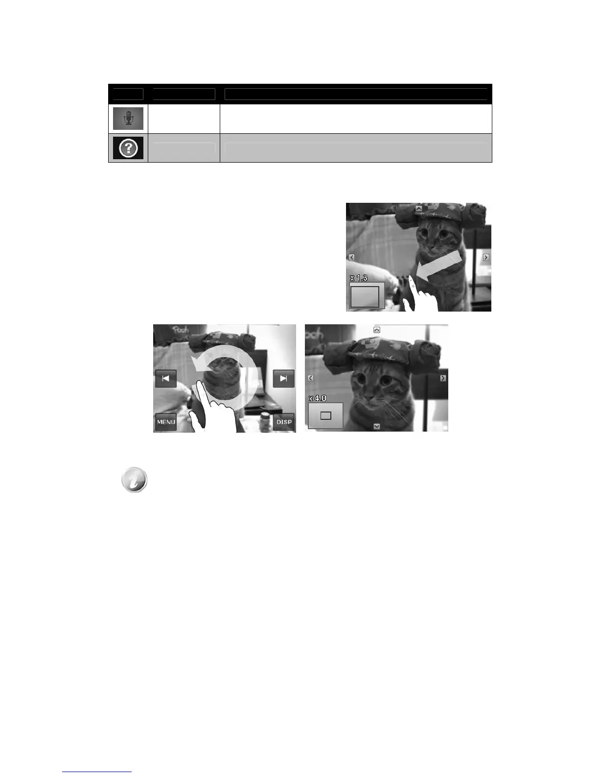 • Draw a circle (clockwise/counterclockwise) in single navigation mode to enlarge the image up
