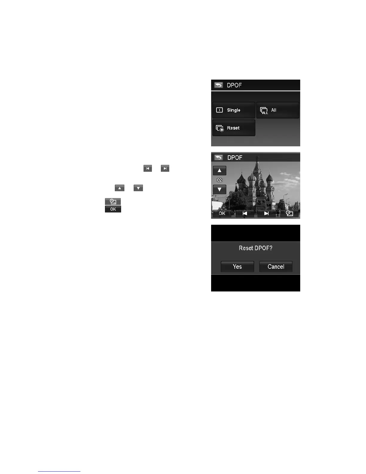 1. Tap to select Reset DPOF on the DPOF submenu.