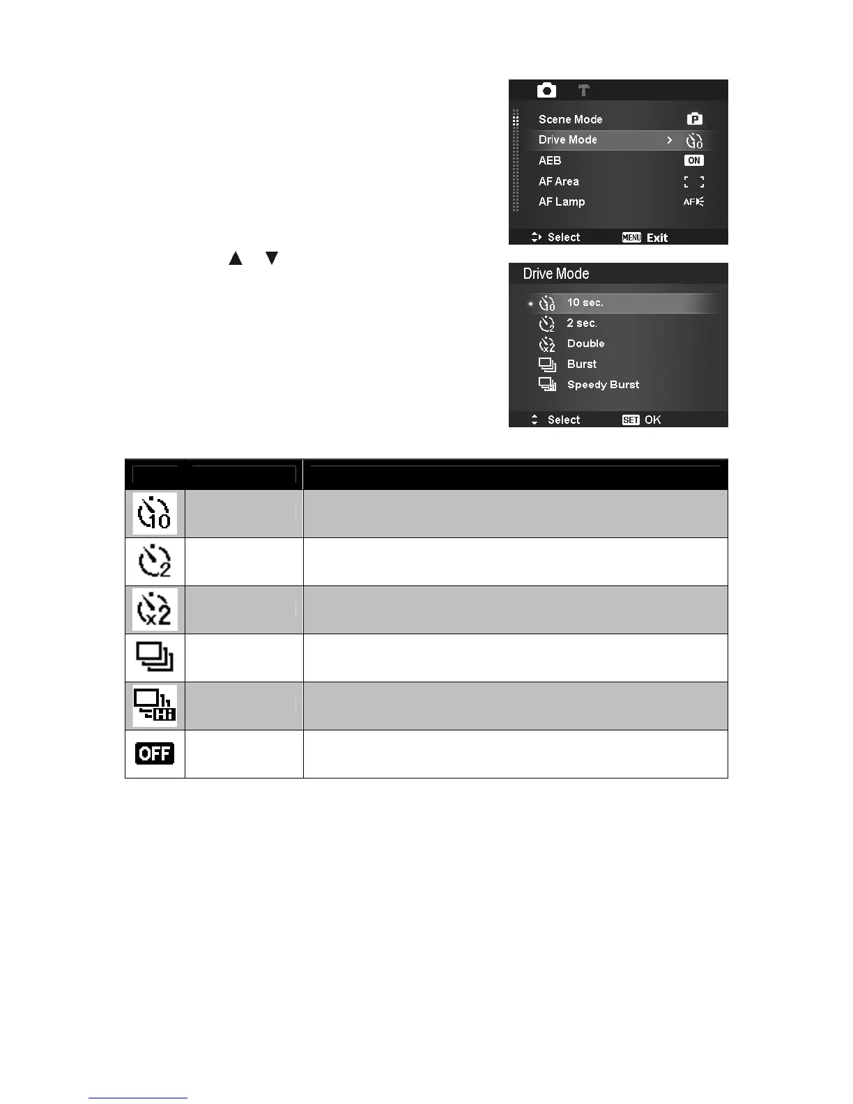 10 Sec. Sets a 10-second delay to capture image after pressing the Shutter button.