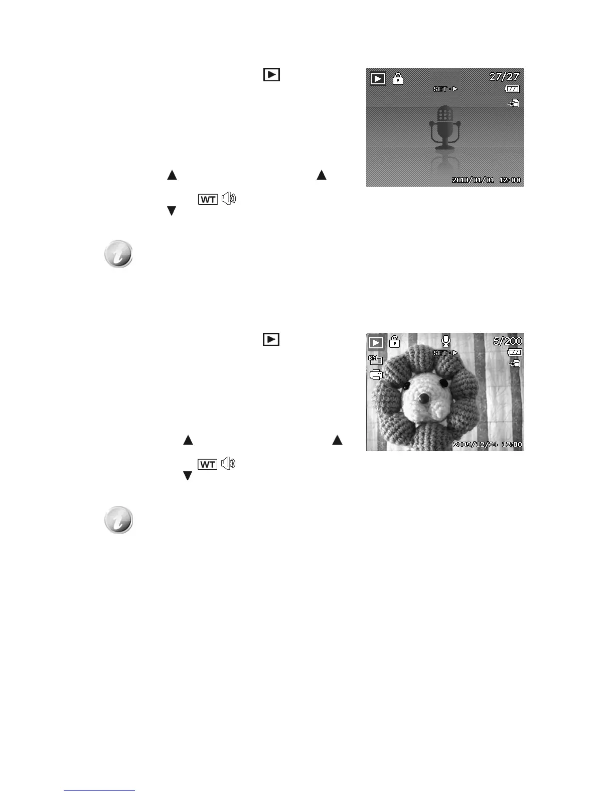 Voice memo is separately recorded and attached to a captured image. See "Voice Memo" on page 48 on