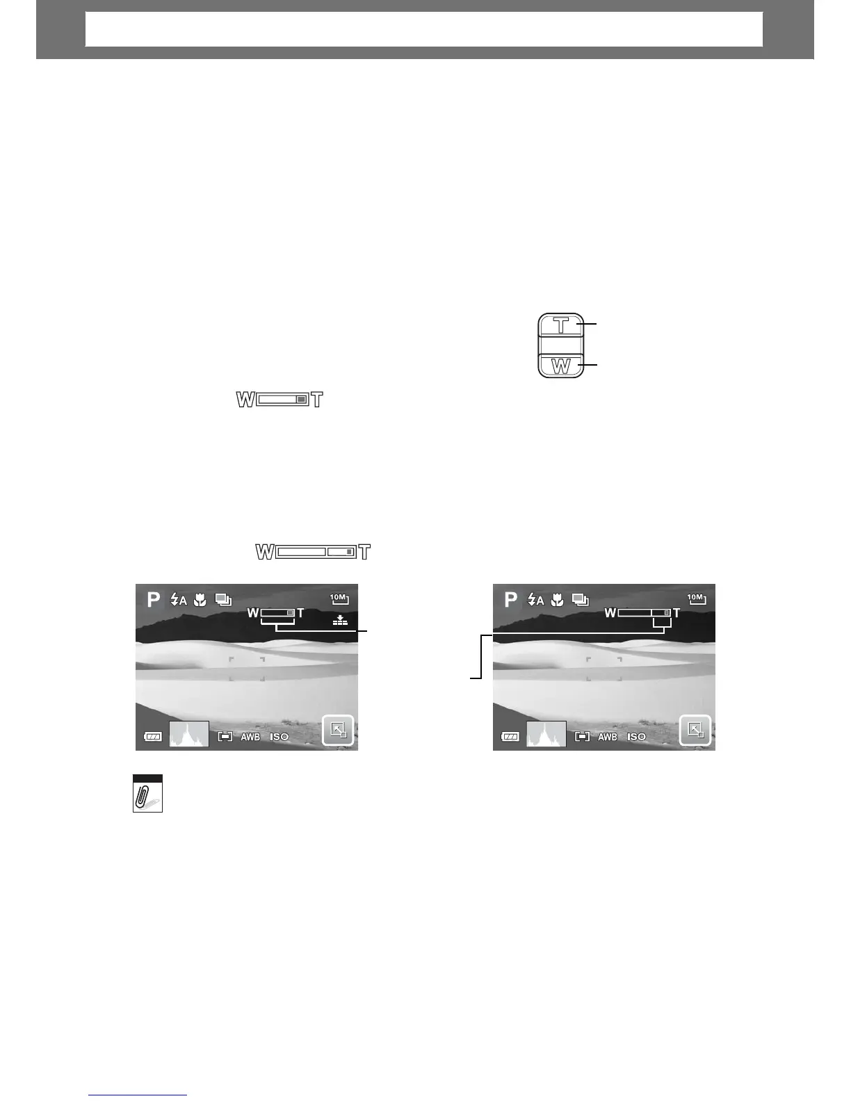4. Press the T button again to switch to digital zoom automatically. Zooming