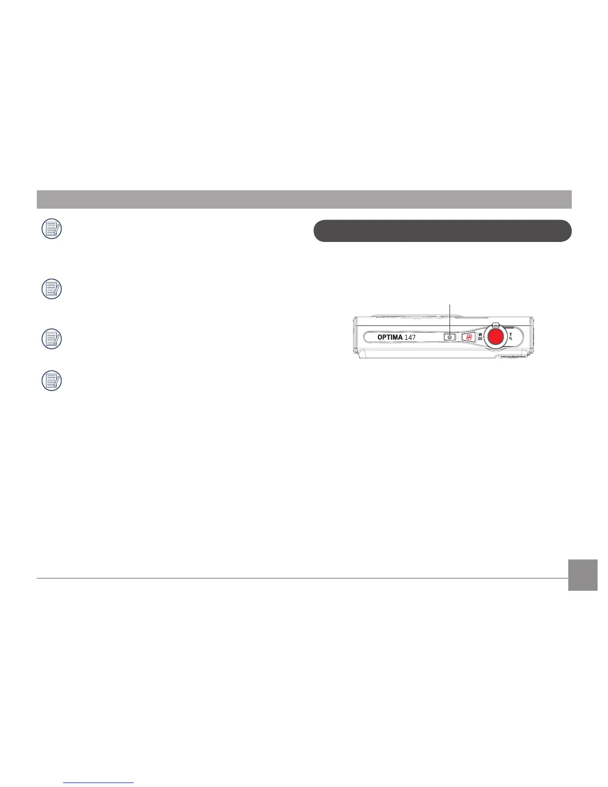 Press the Power button to turn the camera on. To turn off