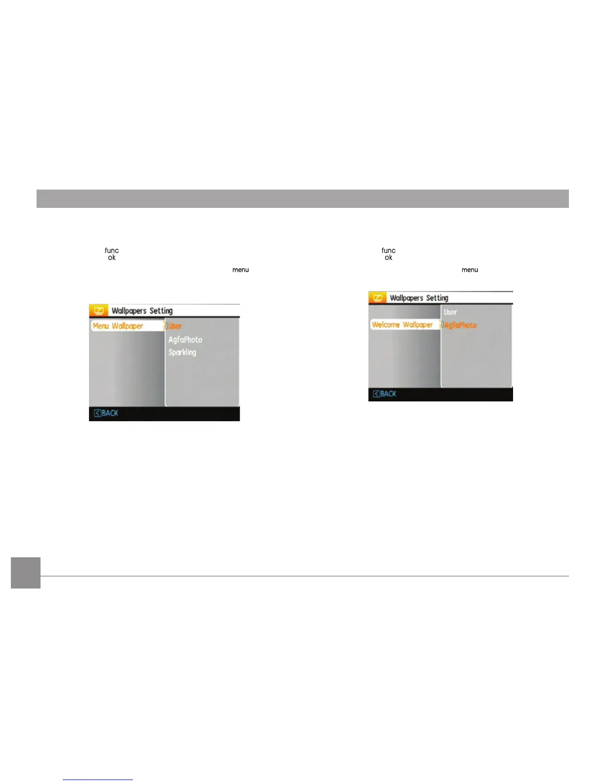 Use Up/Down button to select the Menu Wallpaper