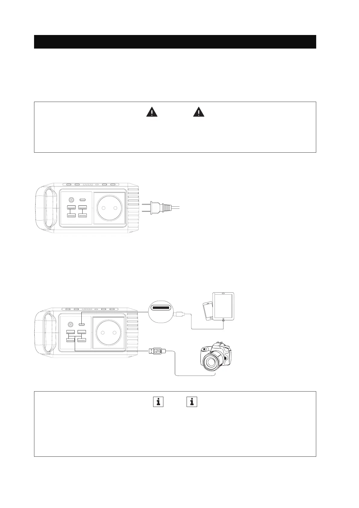USB output ports and the battery indicators will turn on and start charging your USB devices.