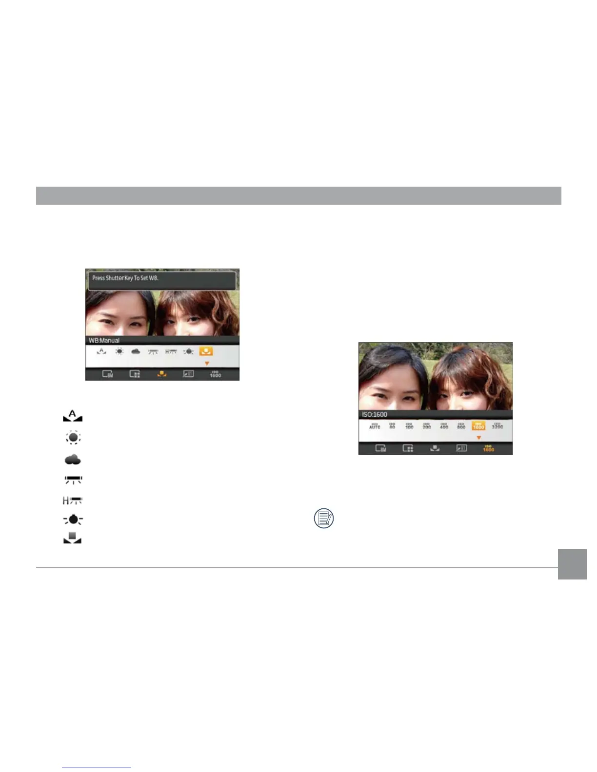 WB: Manual (Press the Shutter button to