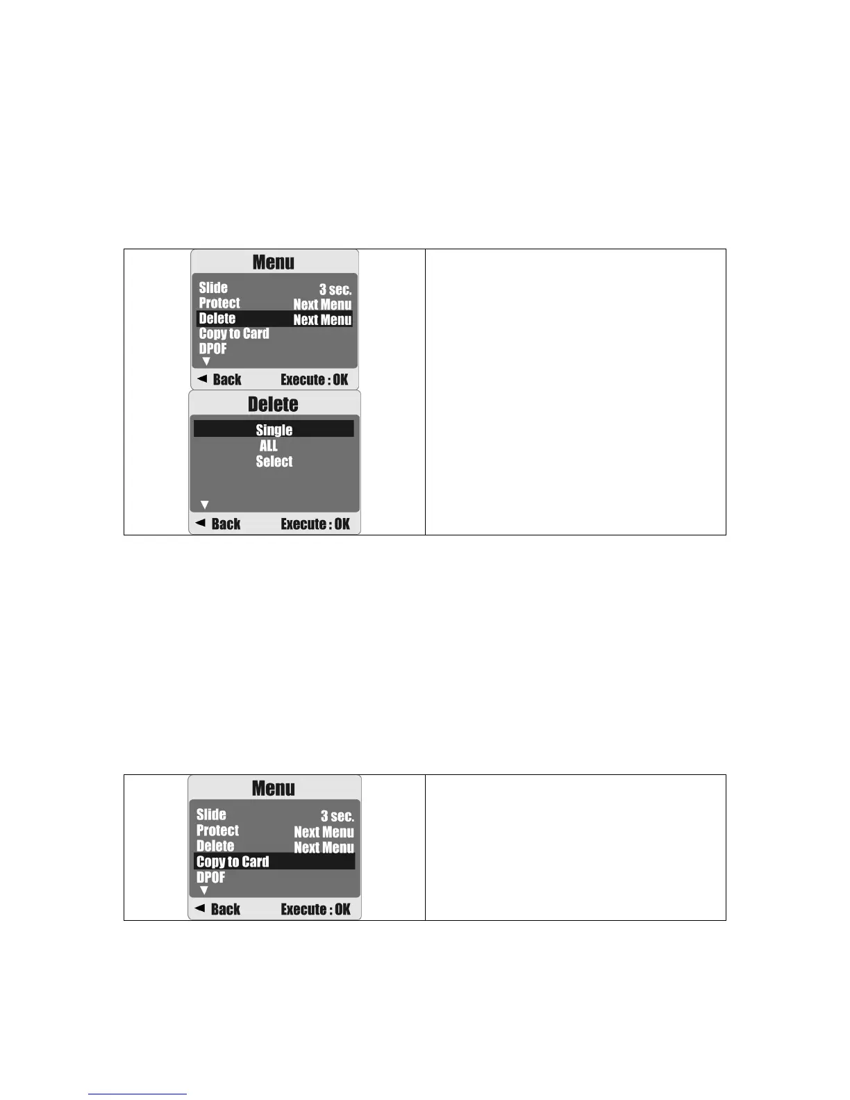 1. Press the Menu Button and select "Delete" using the Menu Button.
