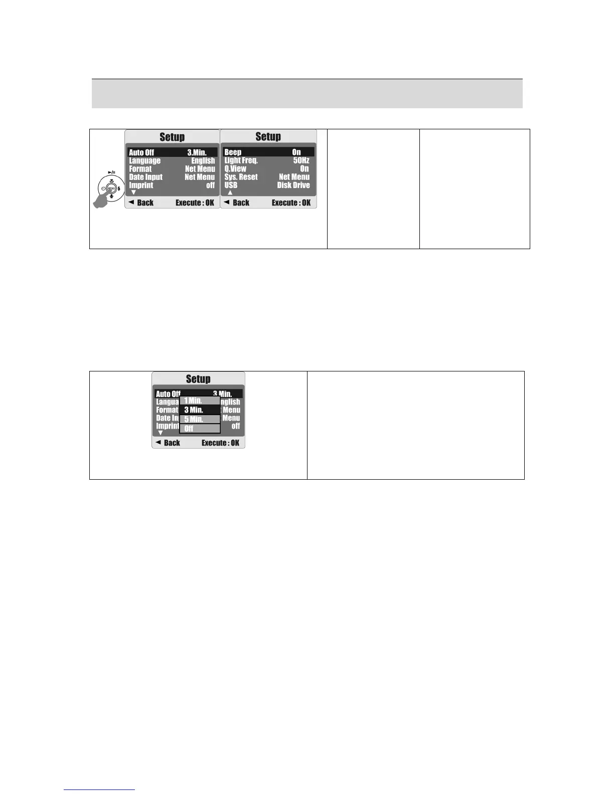 If "OFF" is set, the camera will not turn off automatically.