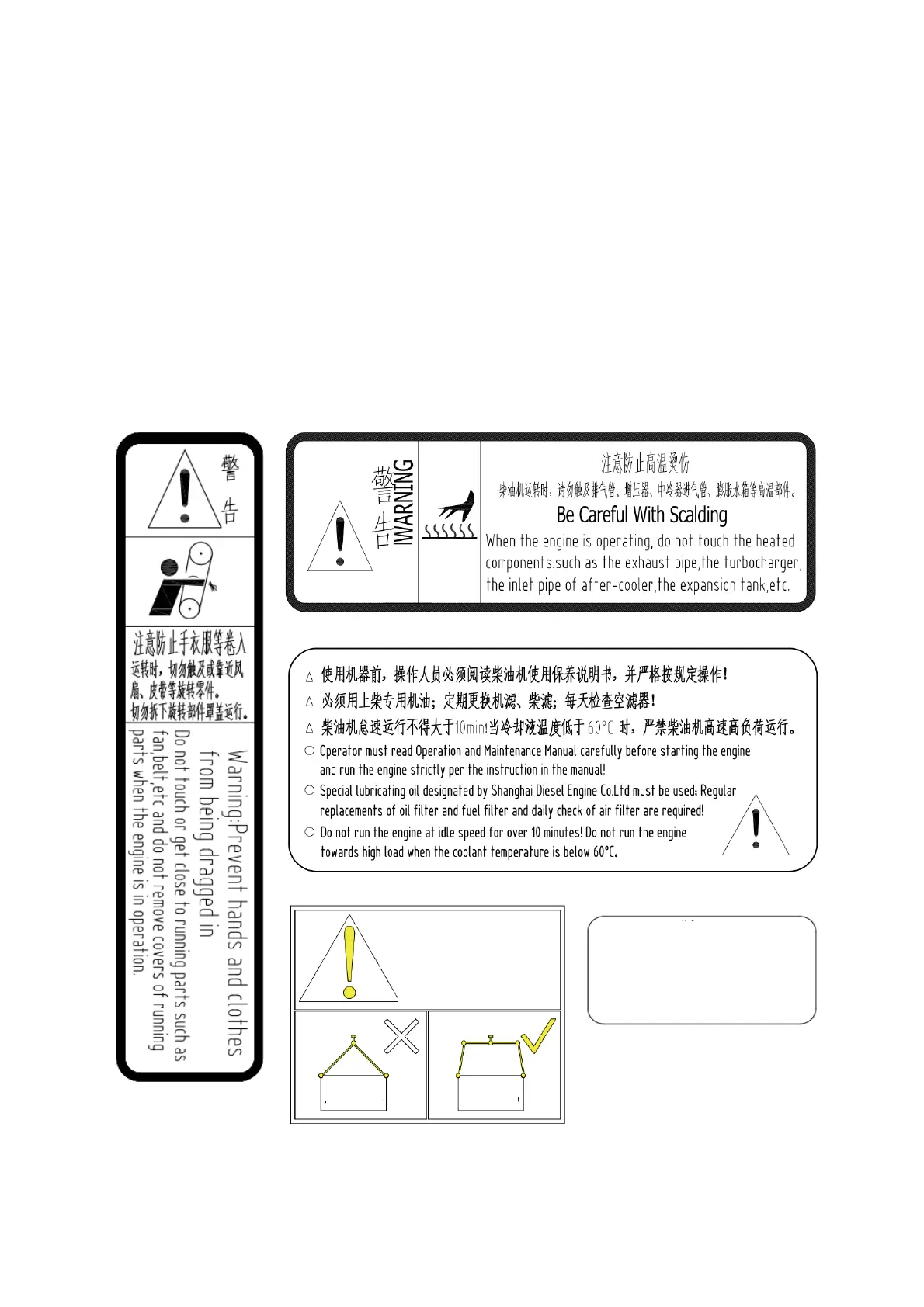 There are some warning sings on the engine. It is required to observe them, or it can cuase harms to man and the