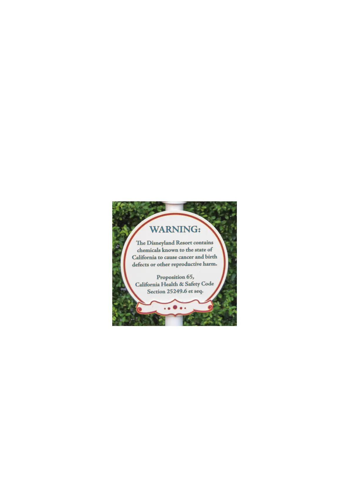 grocery store , or restaurant without finding at least one warning. In fact, even the Disney Land Resort has
