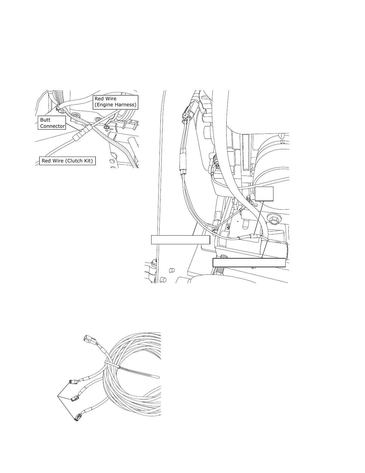 5. Connect engine harness red wire (6) to the clutch pigtail red wire using butt connector. Crimp the butt