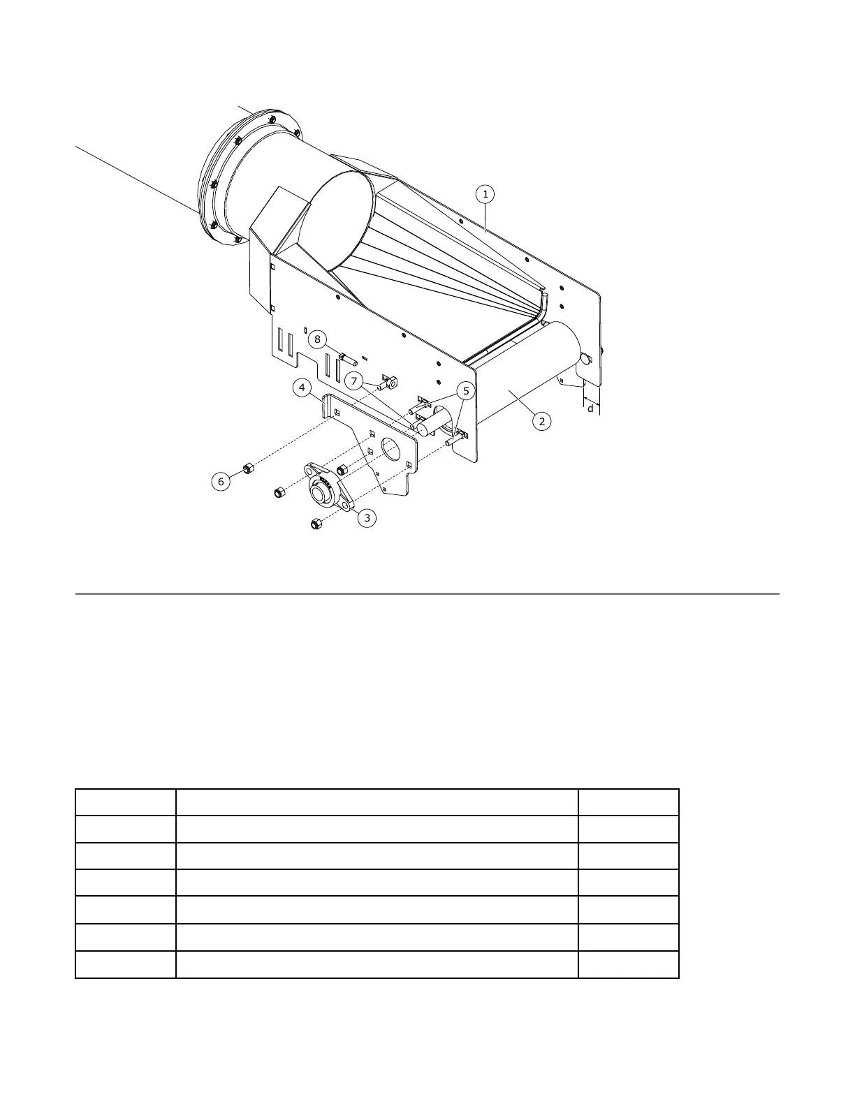 2. Insert the spout scraper assembly (1) into the spout weldment. Position at the top section of the slot and