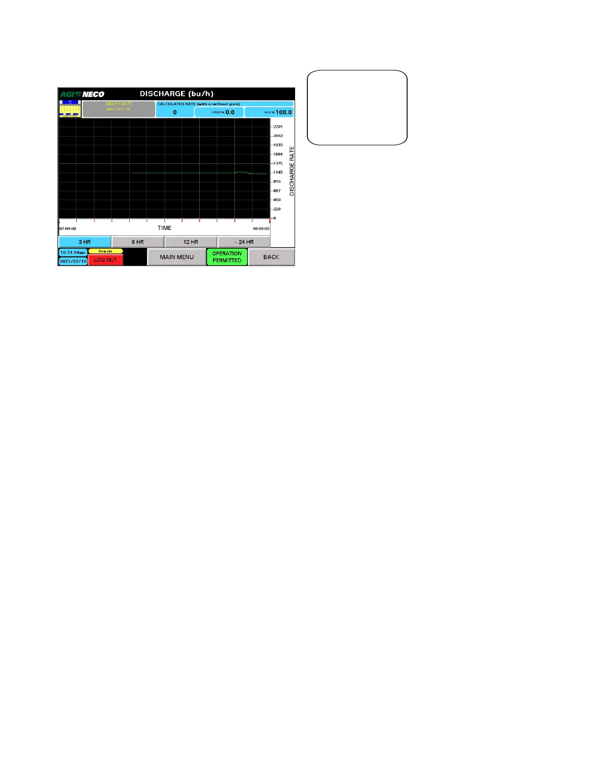 • The graph is represented using the current mode of units, showing BPH (bushels per hour) or m