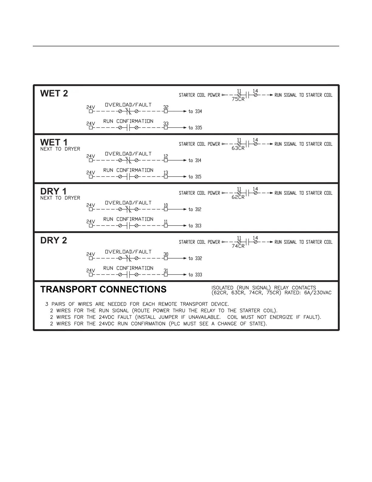 The customer is responsible for wiring any external transport equipment. The following schematics are for