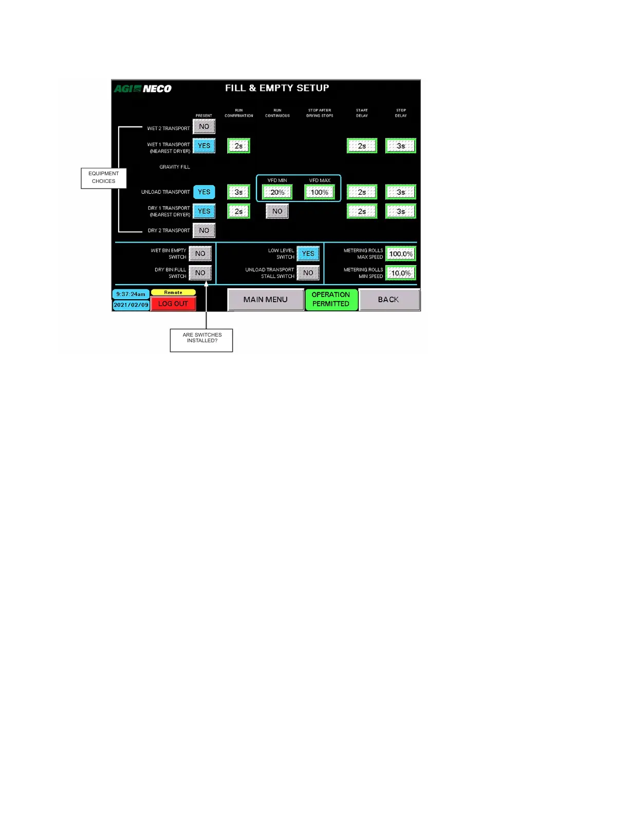 • DRY BIN FULL SWITCH INSTALLED? Yes or No