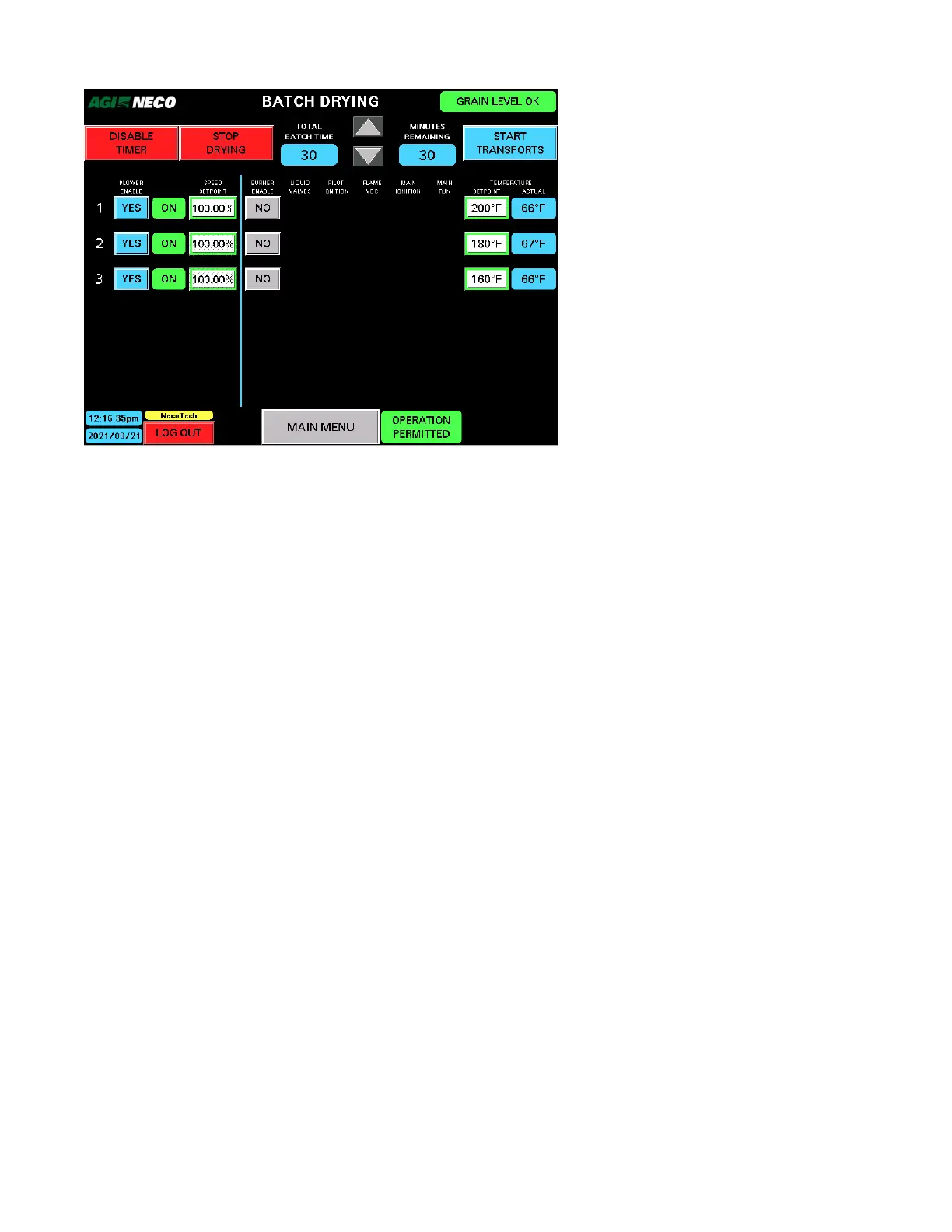 The Batch Timer can be disabled when all the burners are off. In this mode, the blowers are allowed to