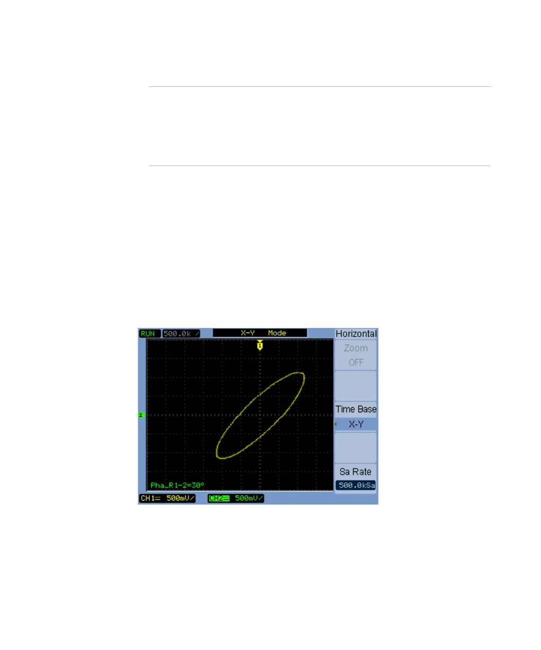 displays channel 1 on the horizontal axis and channel 2 on the vertical
