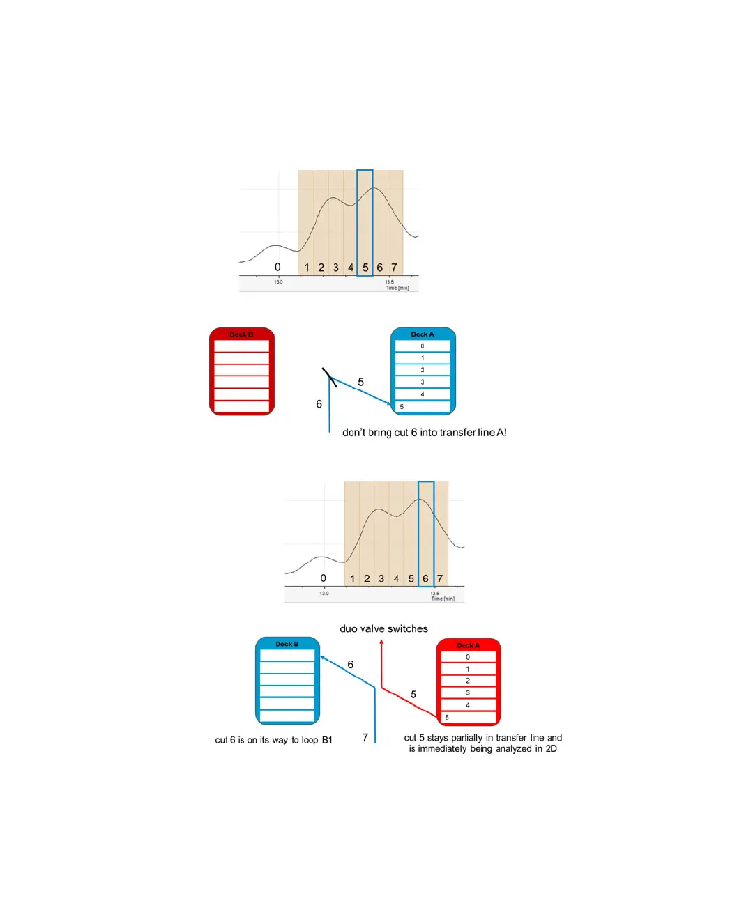 Cut 5 stays partially in transfer line and is immediately analyzed in
