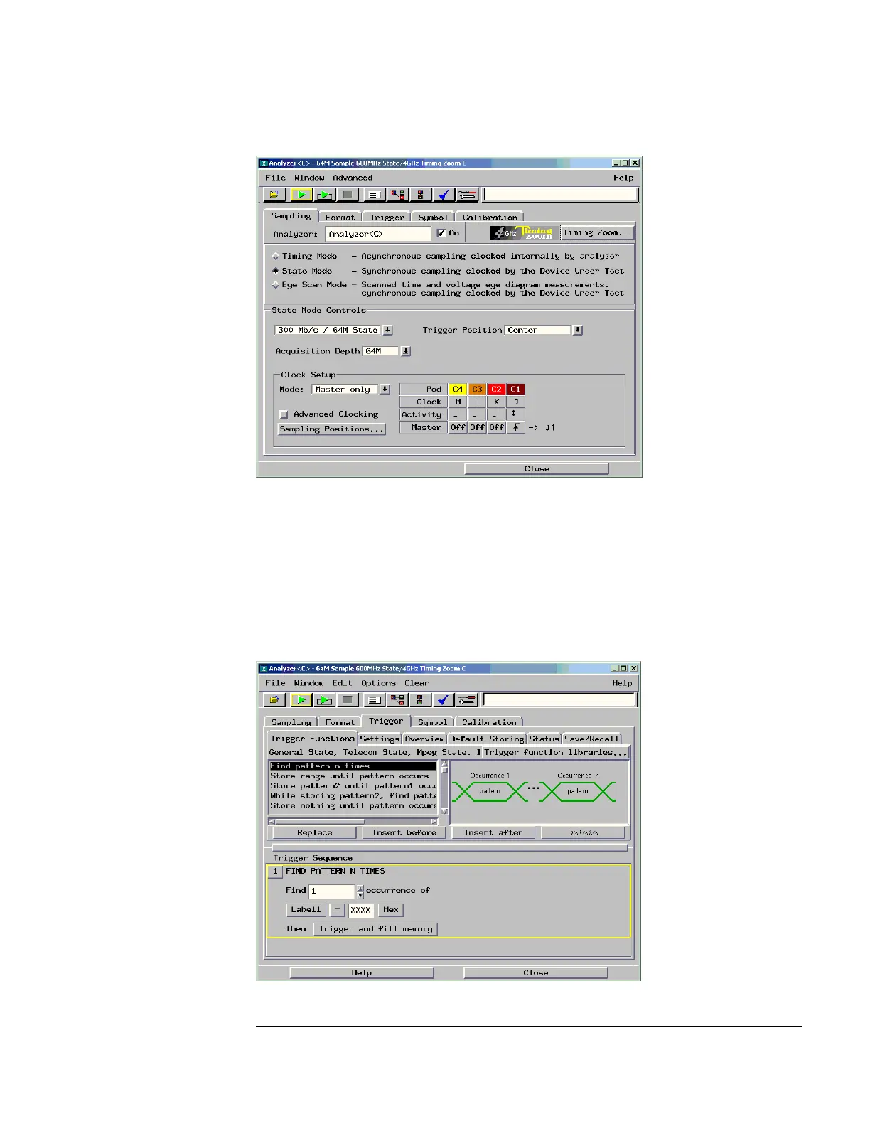 a In the logic analyzer Setup and Trigger window, select the Trigger tab.