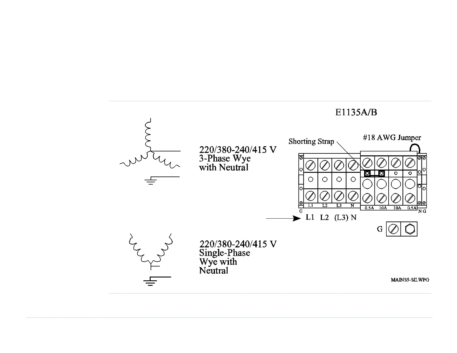 Figure 10-76 220/380–240/415 V 3-phase wye with neutral (0E5, 05L, 0E7), 220/380–240/415 V single-phase wye with neutral