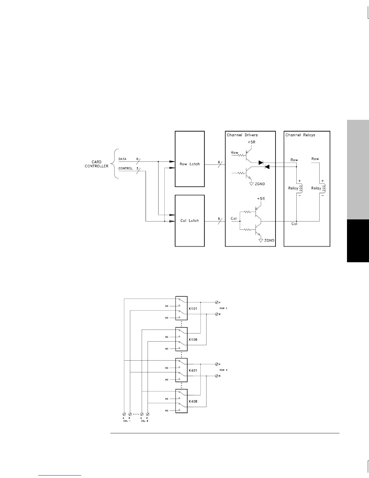 Each group of row drivers controls eight relays. The column drivers