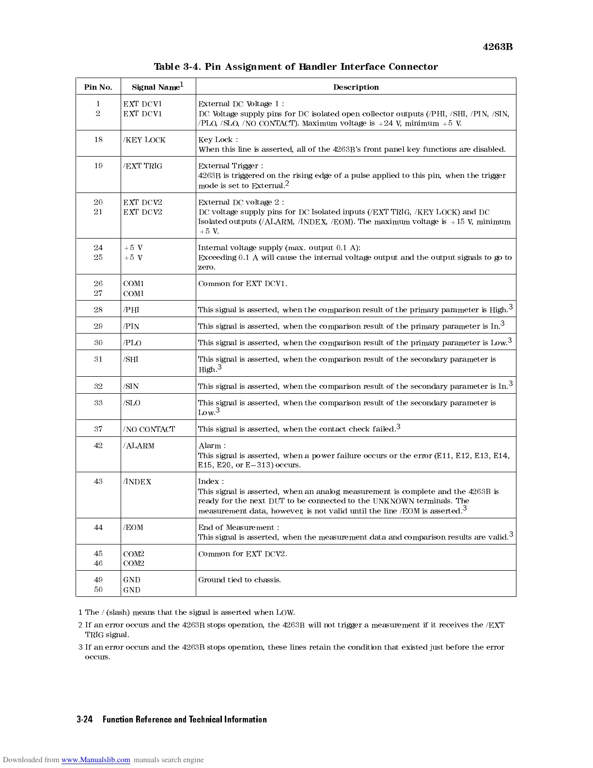 If an error occurs and the 4263B stops operation, these lines retain the condition that existed just before the error