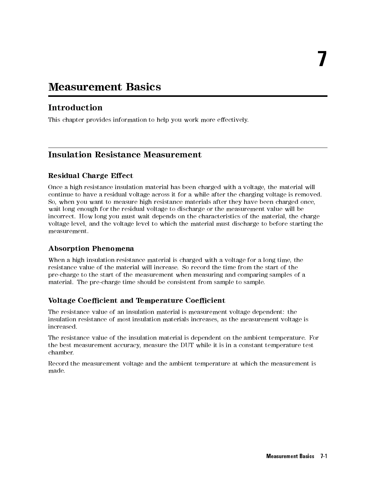 Agilent Technologies 4349B - Absorption Phenomena; Insulation Resistance Measurement; Measurement Basics Introduction; Residual Charge E Ect