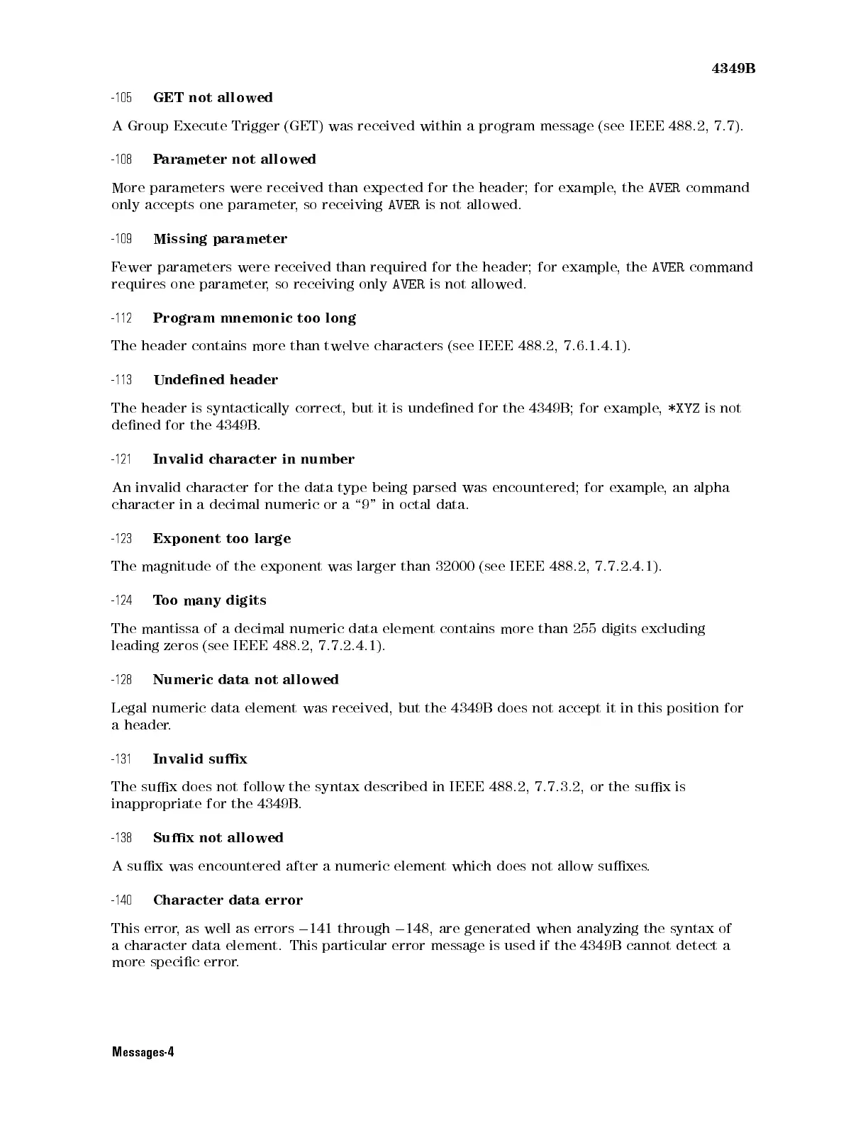 a character data element. This particular error message is used if the 4349B cannot detect a