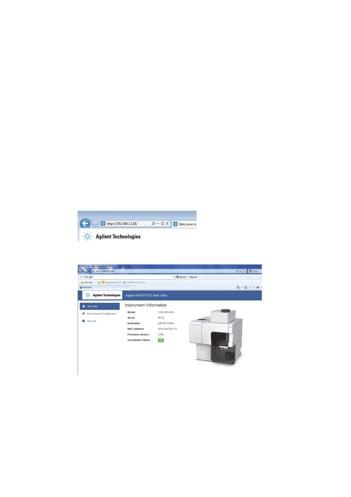 1 Enter the IP address of the instrument (in this case 192.168.1.128) into the address bar to