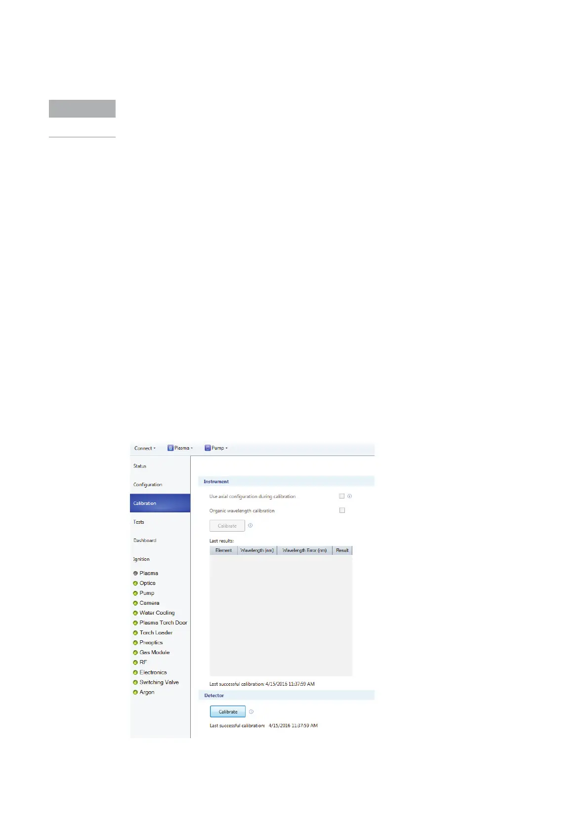 new software is loaded. The wavelength calibration routine should only be run after a Detector