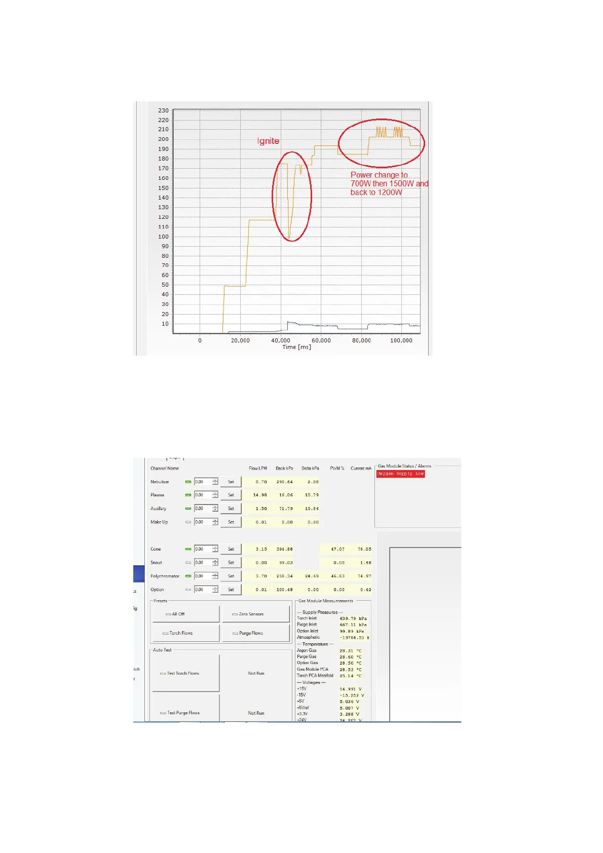 Plasma run status typical Gas flows and pressures (Poly boost purge and cone purge on also).
