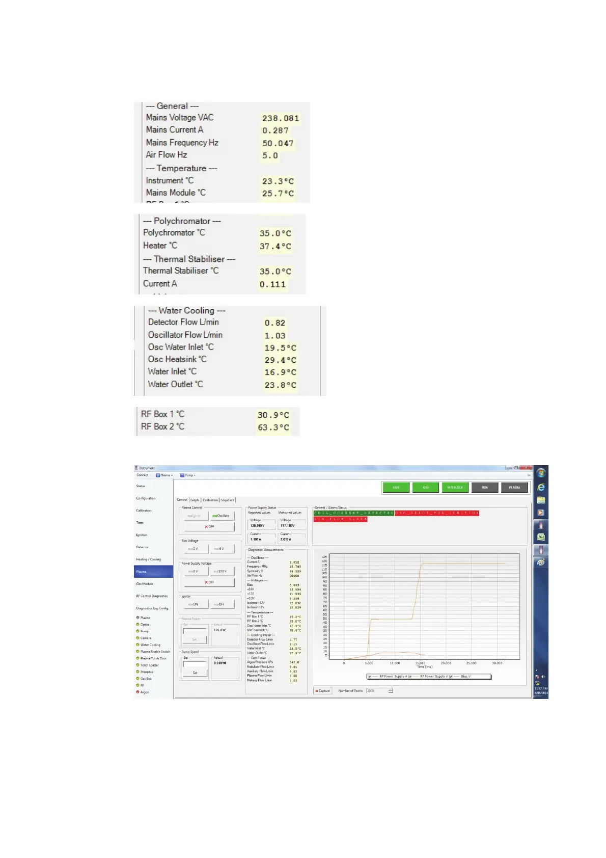 Heating/Cooling - Typical water values and instrument module temperatures.
