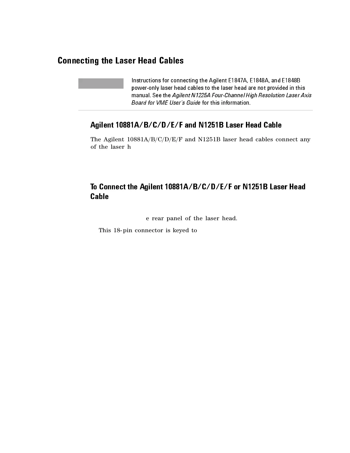 The Agilent 10881A/B/C/D/E/F and N1251B laser head cables connect any