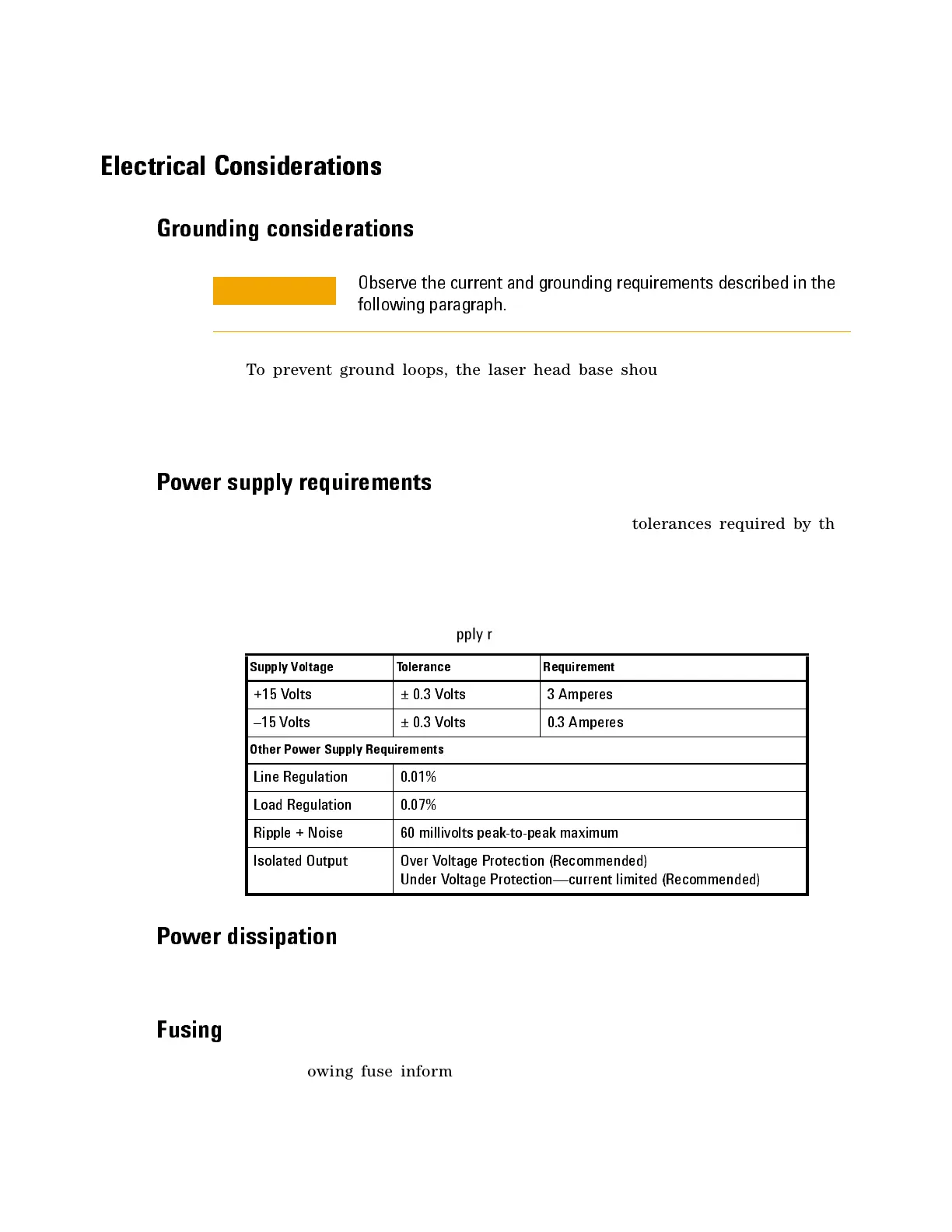 Tab le 7 Laser Head Power Supply requirements